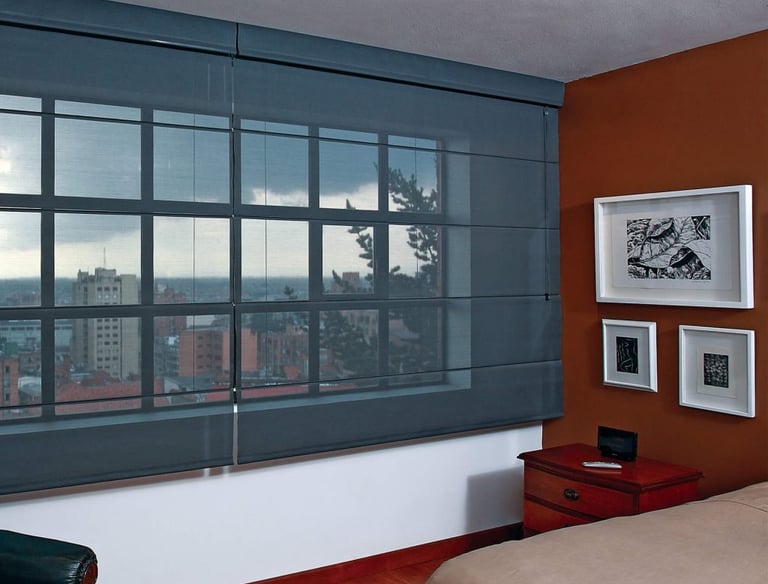 Ideal para grandes ventanales o como divisor de ambientes con paneles que se deslizan lateralmente.